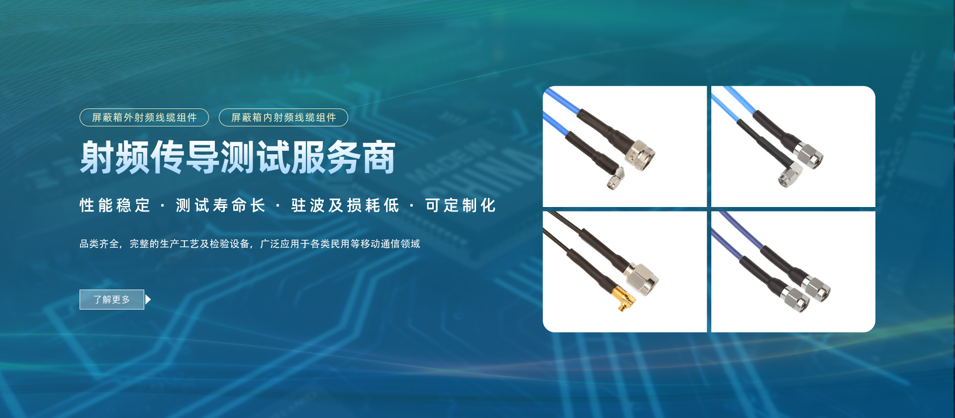射頻線纜組件由射頻連接器和射頻線纜兩部分組成。射頻線纜組件主要用于連接各類信號收發(fā)設備/模塊或天線/發(fā)射機,確保其間信號精確、低損、高質的傳輸。