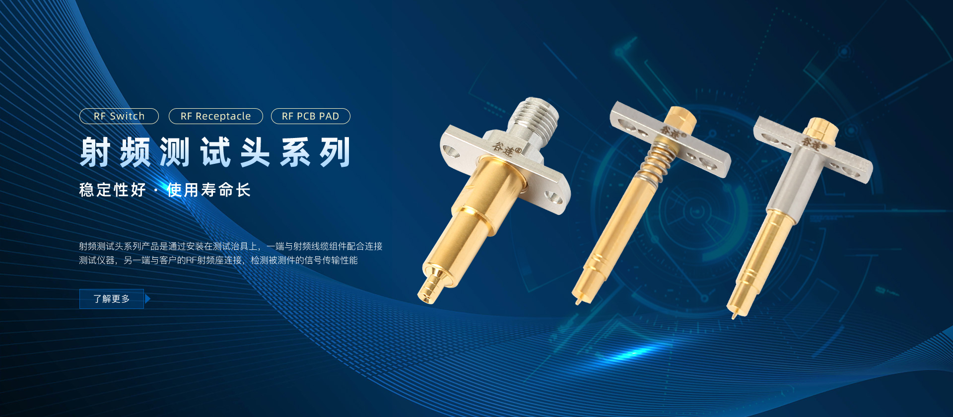 谷連精密創(chuàng)建于2017年,是全國領先的射頻傳導測試的服務商。公司產品主要應用于手機,平板, 路由器,無線模塊,新能源汽車以及航空航天等的測試領域。主要產品包括:射頻測試頭,射頻線纜組件,射頻轉接器以及其他射頻測試其他輔助用品。谷連精密具備自主研發(fā)能力,目前已經 獲得多項研發(fā)專利和ISO 9001質量體系認證,并可以接受客戶產品定制化服務。谷連精密為更好地服務好全國以及全球客戶,設有谷連(上海),谷連(深圳),HONLINK(香港)等分支機構。